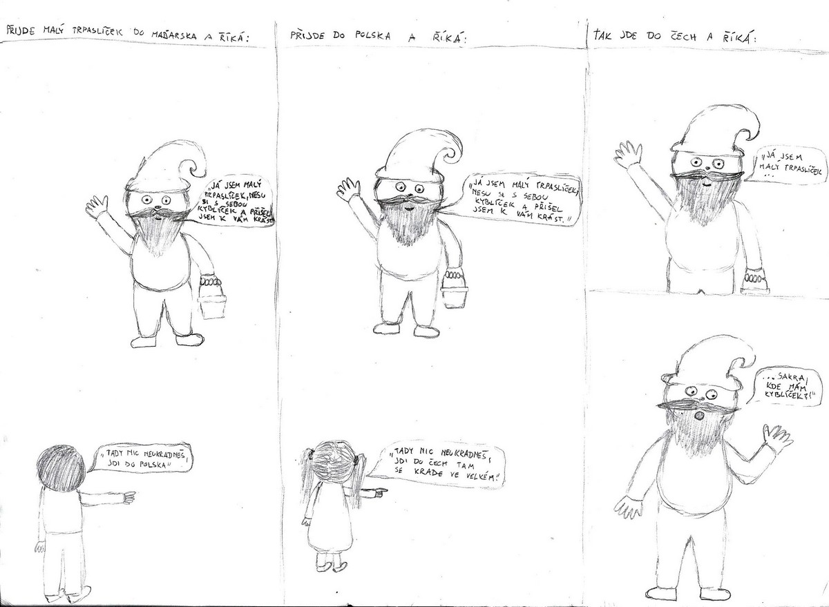 Tři žáci stojí za trest na chodbě. "Co jste provedli?" ptá se inspektor. První povídá: "Já jsem chtěl hodit houbu z okna." Druhý: "Já taky." "A co ty?" "Já jsem Josef Houba."