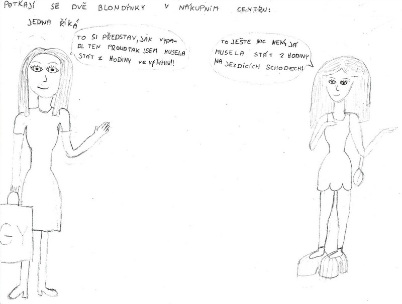 Co dělá sedmnáct blondýnek před kinem?Čekají, až přijde ještě jedna, protože film je přístupný až od osmnácti.